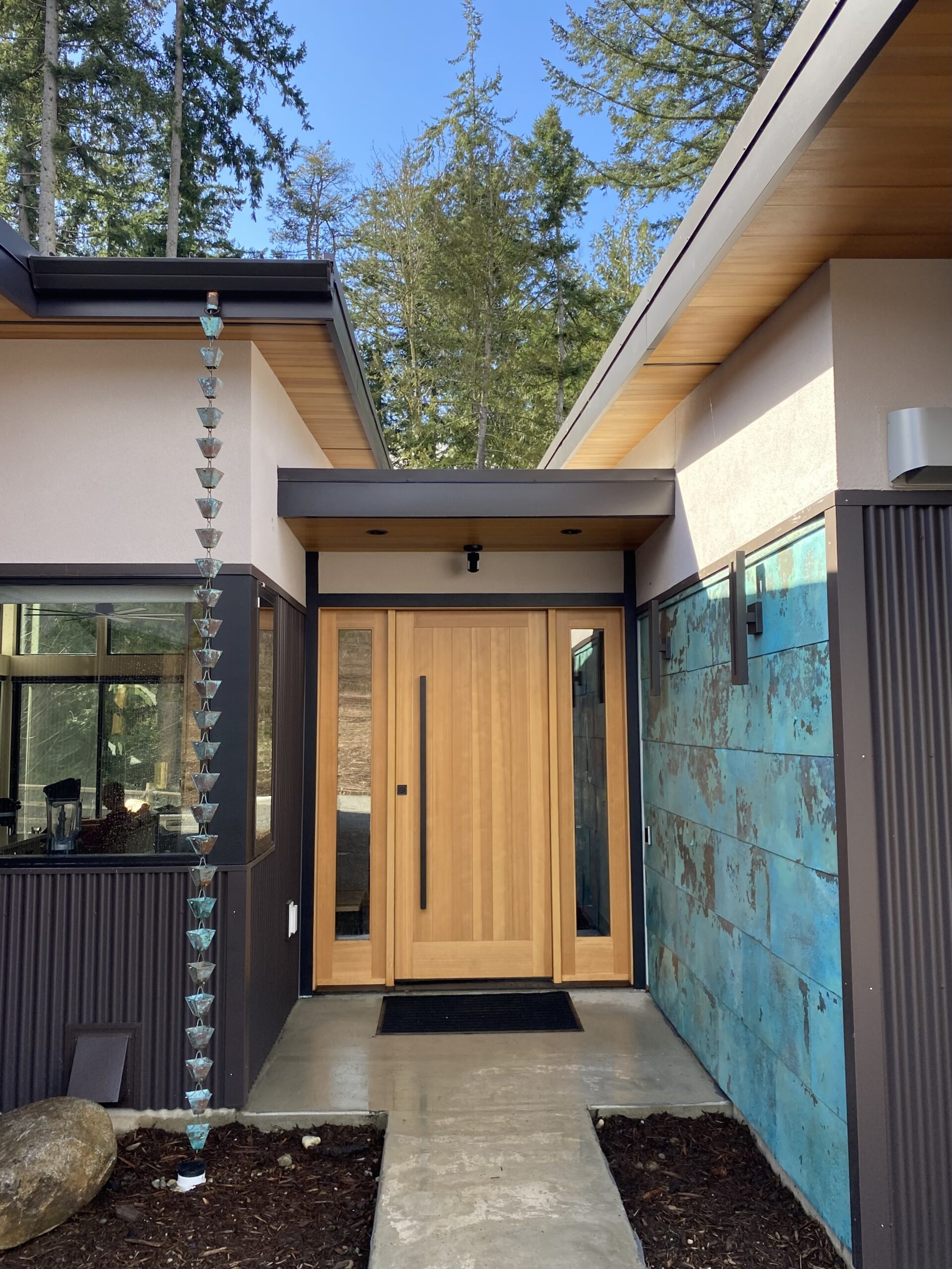 All of my projects are collaborative, some more than others. My customer had a vision of this copper patina accent wall and the copper rain chain. We sourced the copper, she experimented until she got it to patina properly, and we installed it all.