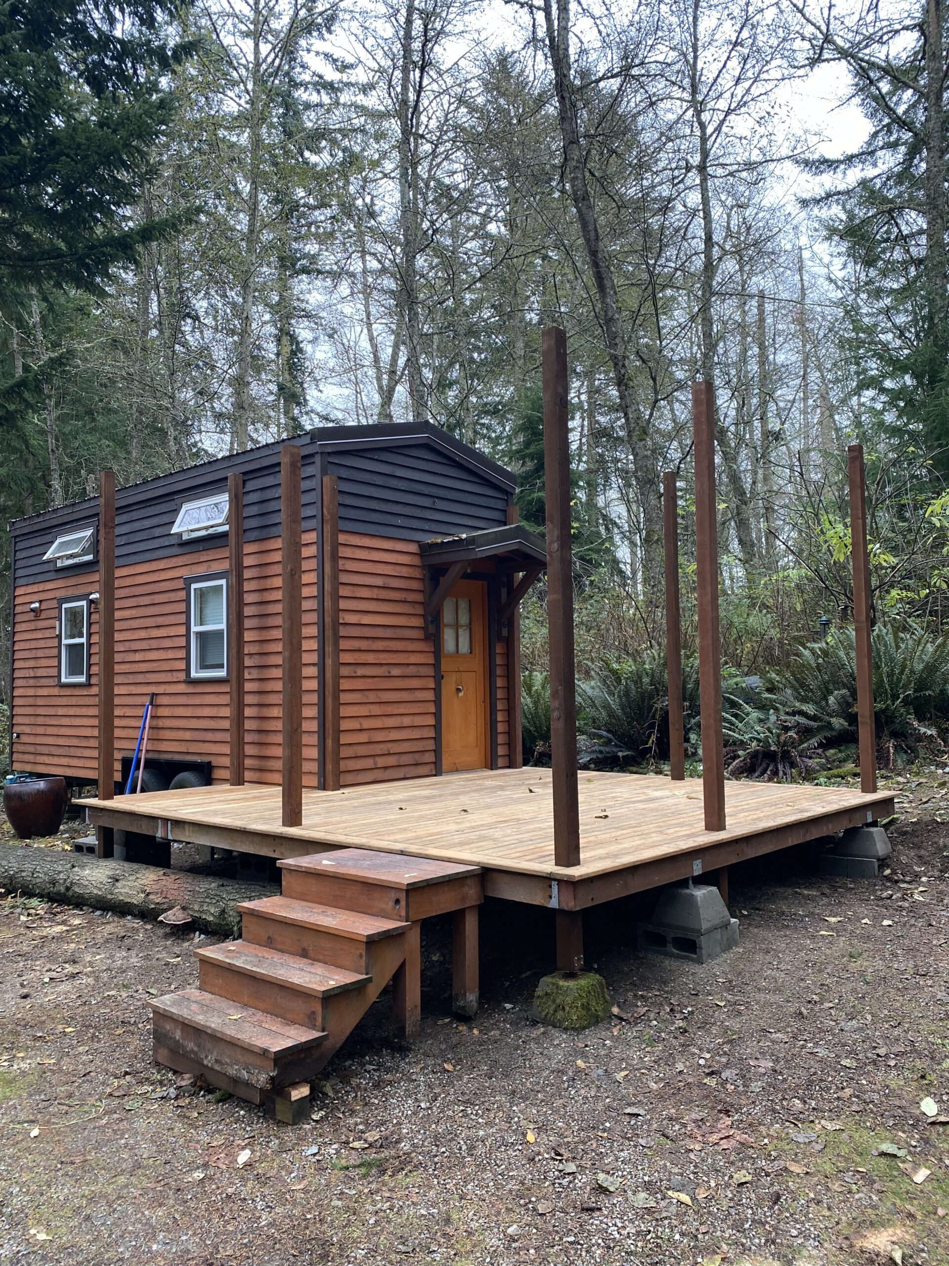 I love small projects too! This deck is in progress, and will double the dry square footage of the tiny house, and be used as a “catio”. New pictures to come soon…